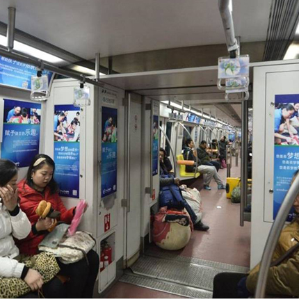 地铁乘客平均乘车时间近半个小时,因此车内媒体拥有长阅读时间,相当于在户外移动的平面杂志,可完整详尽的传达广告信息,是阅读型媒体。同时,车内媒体还具有独占性强,干扰度小,媒体数量多的优势,是品牌传播、信息传递的媒体