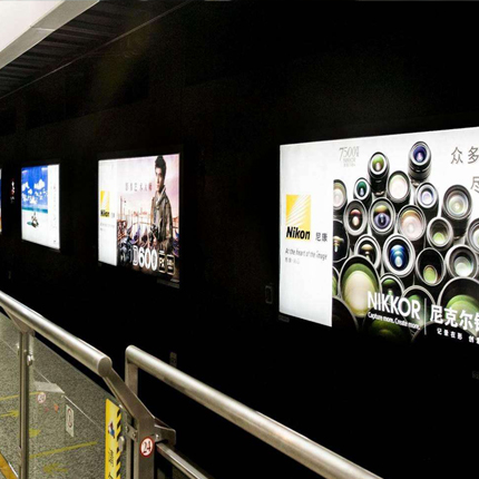 深圳地铁:广告形式包括站台、站厅、通道、电梯的地铁广告灯箱,地铁广告列车车门、车窗等位置广告,地铁列车电视广告,深圳地铁车站内的立柱、墙面,灯箱等的主题车站广告等。