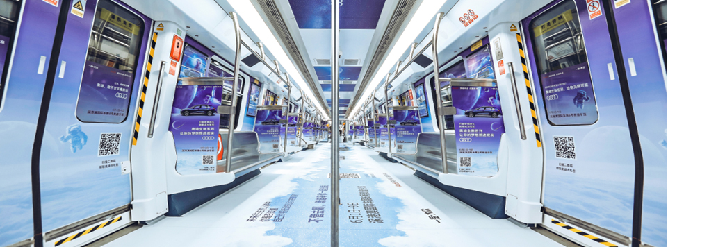 品牌列车包括车厢看板、车窗贴、车门贴和车椅侧贴。11号线商务舱不售卖 |