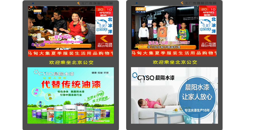 32寸联屏广告,1000块屏幕分布在约780辆公交车厢内