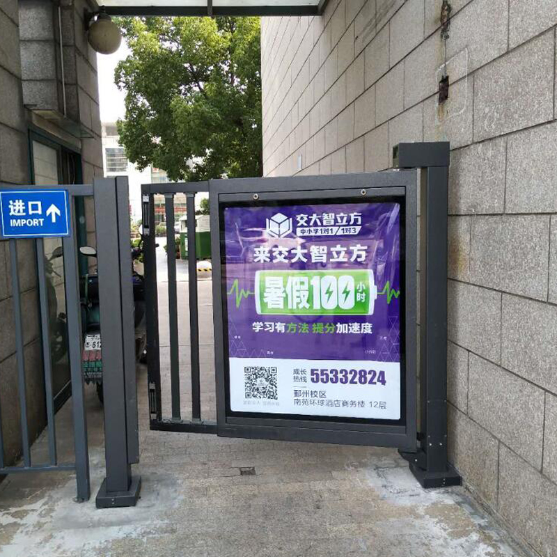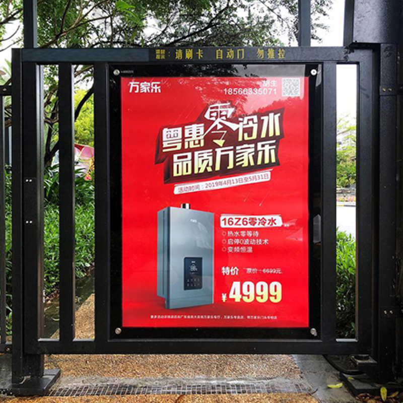 安装于进出小区必经通道,晚上有灯,给回家的人指个路,普通小区业主每天至少有3.3次以上关注广告的机会,一周内至少可以关注24次以上,一个月内关注次数超过90次。